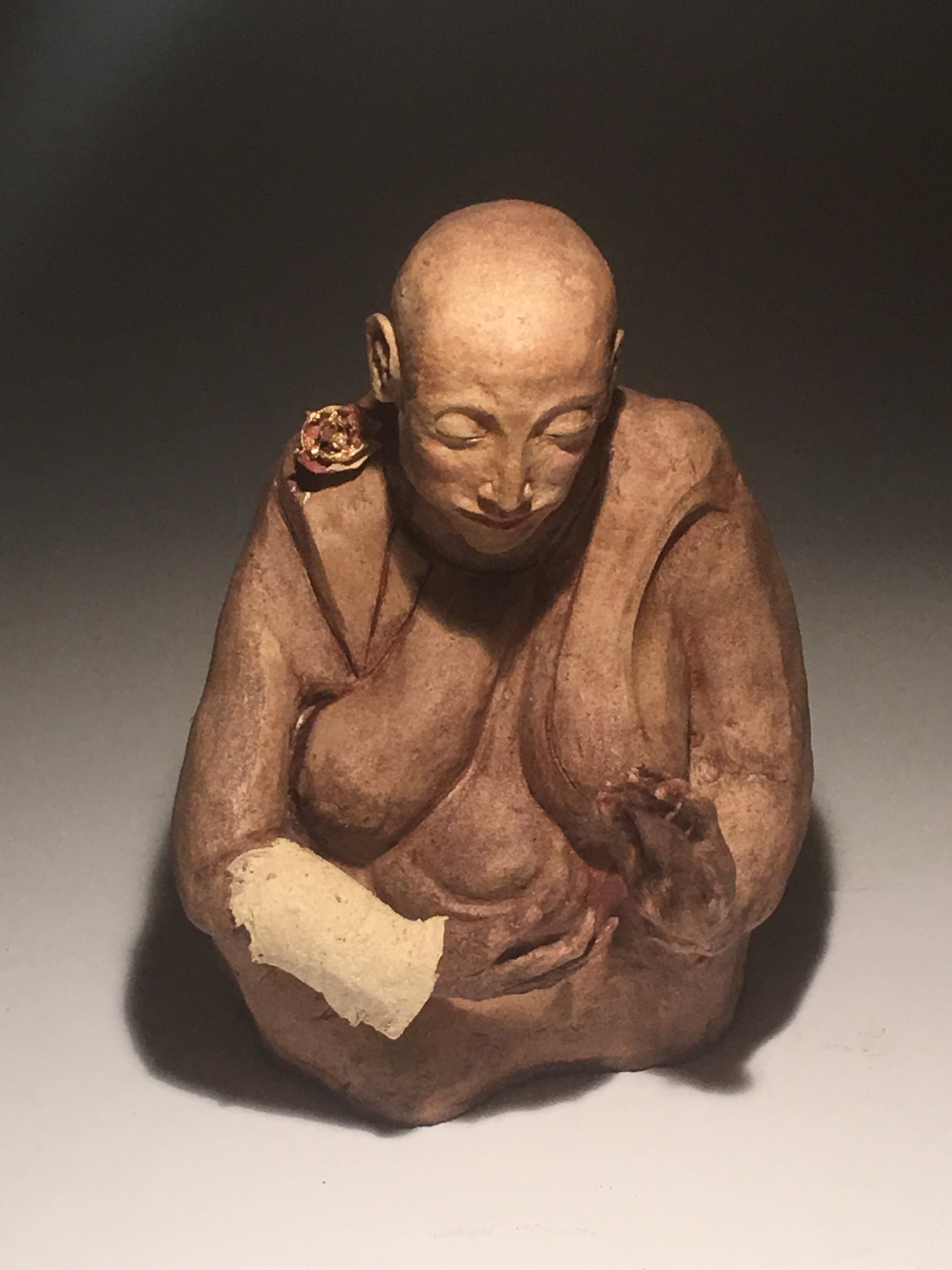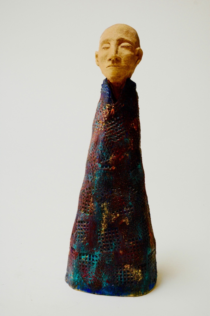 If you place your hand over the top half of this figure’s face it will seem as if it is a female in a monk-like robe. Slide your hand down to cover the lower half of the face and she will appear a male. An observer of this piece remarked, “Just like today. I have to look twice at some people, especially metro types. Hard to tell man or woman.”