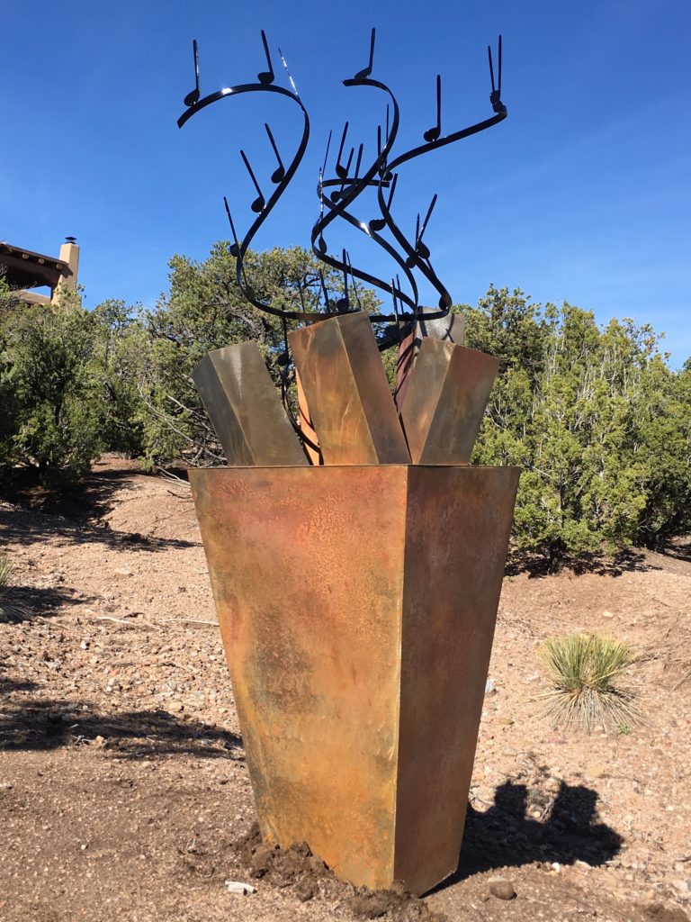 Here, five rusted steel box-like contemporary structures form a nest from which rise notes that ascend as if unencumbered to the heavens. For me, a reminder to remain focused both in work and life.