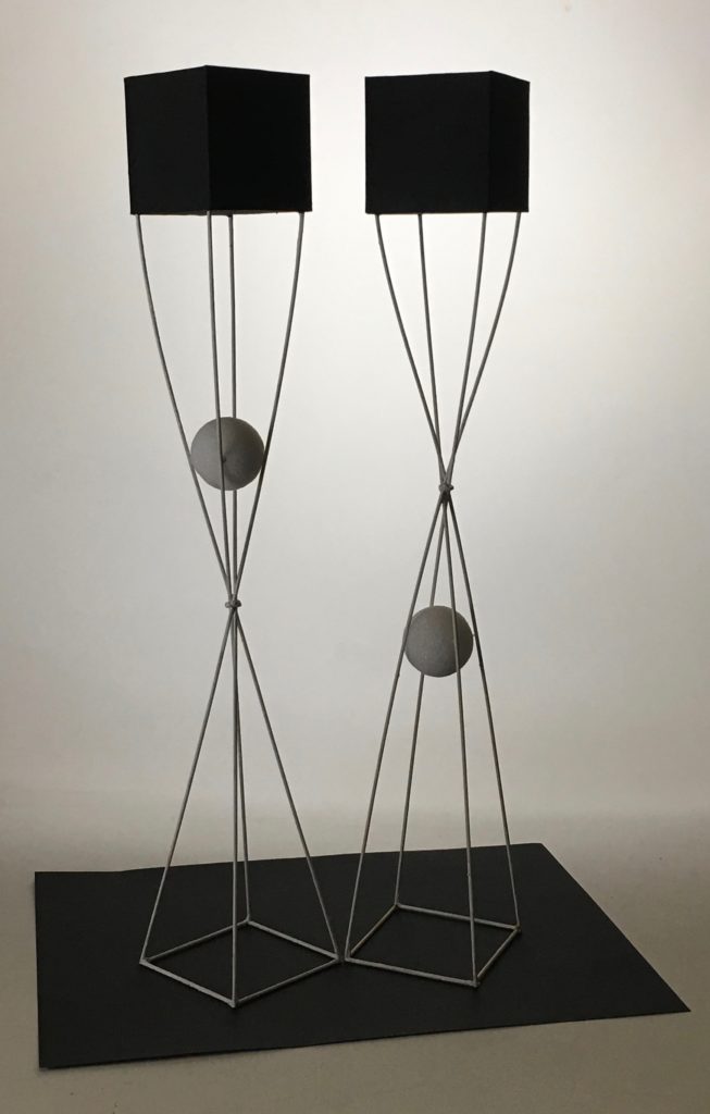 I have tried to reflect this tradition to find beauty in simplicity by combining the fundamental elements of point, line, and volume to form two similar yet subtly different forms. I like it. My hope is that the piece find its way into a contemporary home or office.
