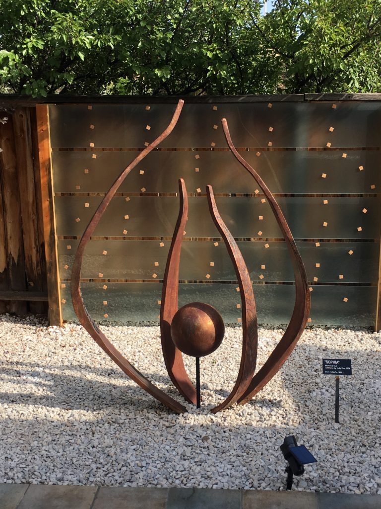My client wanted a sculpture that was personal to her, not one that was merely attractive to others or pleasant to the eye. She wanted an piece that reflected her many faceted life. It was also to be an outdoor sculpture that could be seen from her bedroom and living room. While in her seventies, she felt that her life–far from over–was still unfolding. She wanted the sculpture to reflect that experience of being unfinished and far from perfect. Looking back over her life she recognized that her varied life-experiences, while seeming separate, were all of a piece. She wanted the sculpture to reflect that experience as well. “I feel that I have learned wisdom over the years. No, the Hebrew word חוכמה captures my experience. While I’m not particularly religious I want that word incorporated into the piece. I’m not sure why. I will call the sculpture חוכמה or Sophia.”