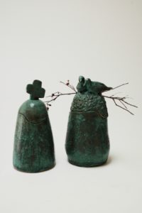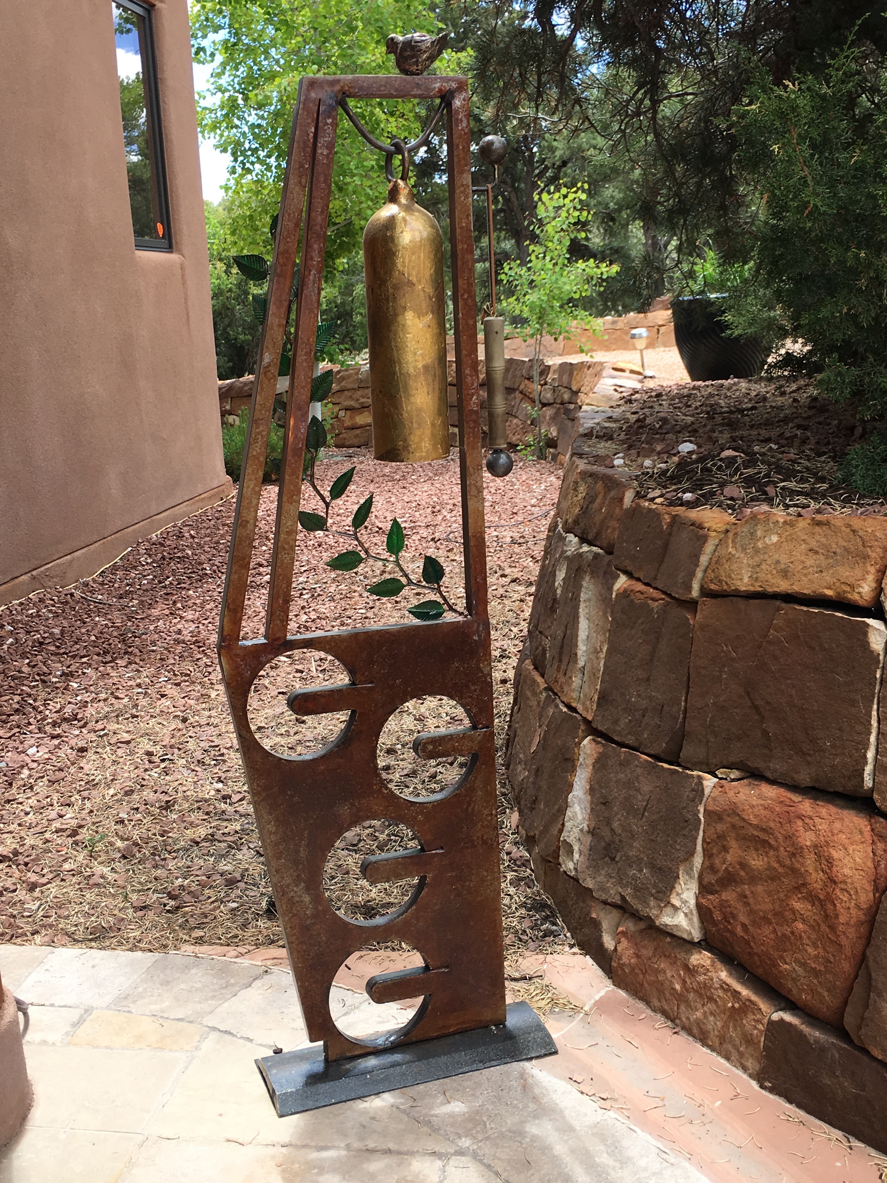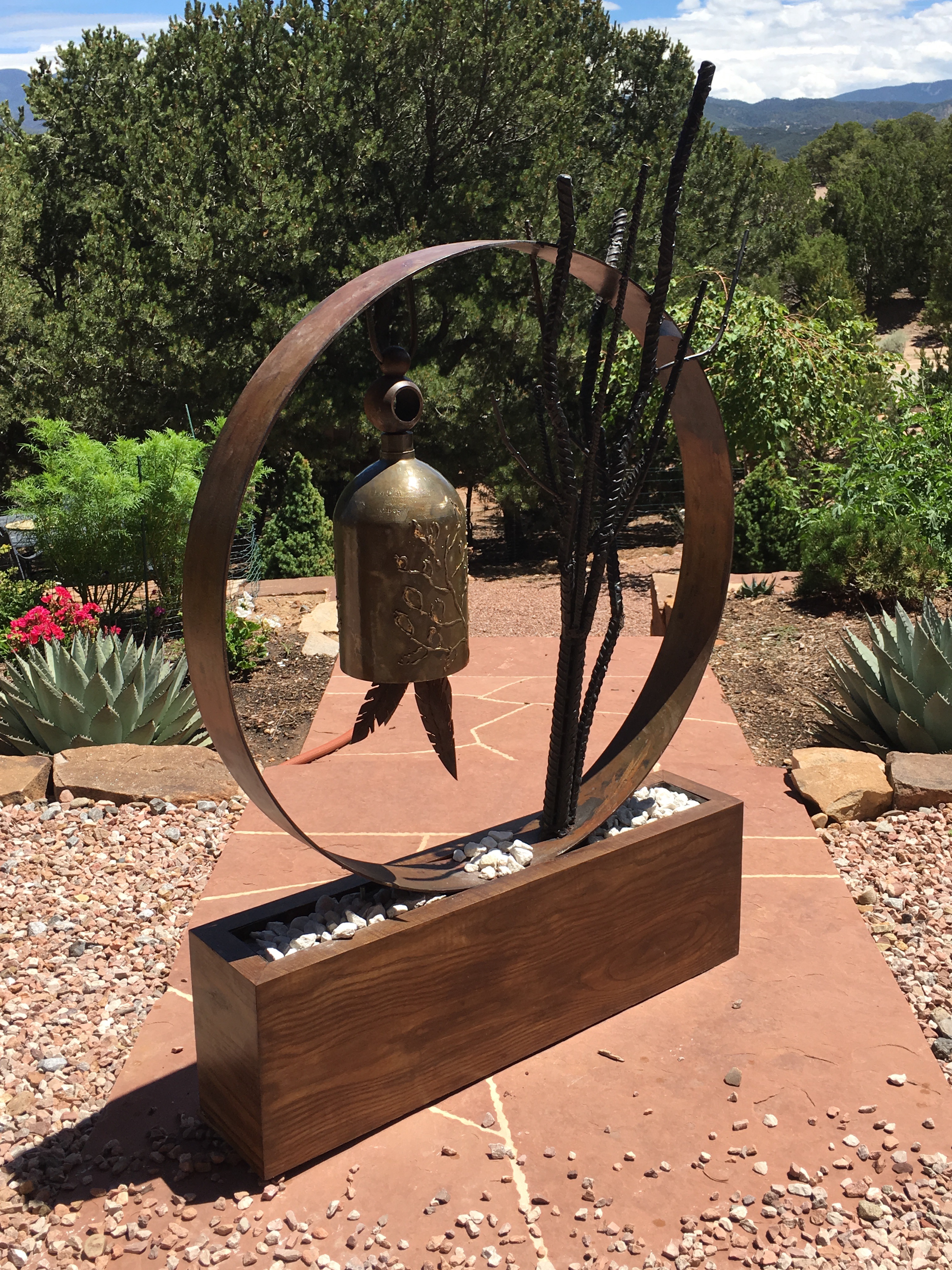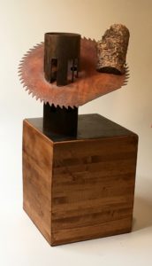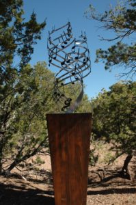 This steel sculpture on a wooden base is one of a triptych: “Ode to Joy (Beethoven), “The New World Symphony” (Dvork) and “Ending On A Positive Note.”